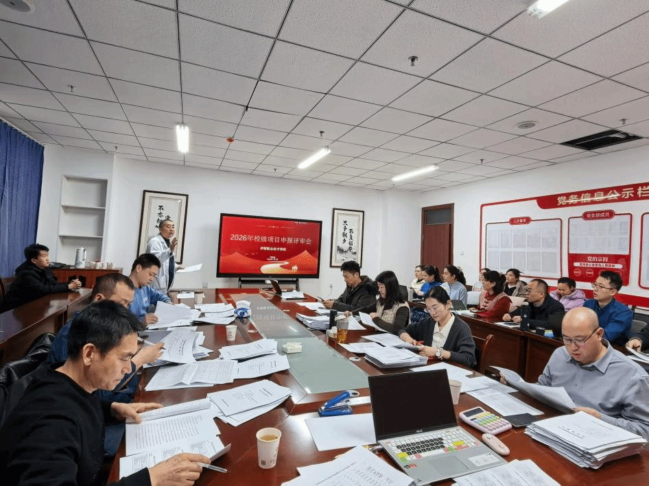 2026年1月7日,伊犁职业技术学院2026年度校级科研项目申报评审会在学院顺利举行。本次答辩涵盖自然科学、教育教学改革、党建思政三大类别,共计64个项目参与评审。答辩活动为期一天,学院领导、评审专家及各课题负责人与会。