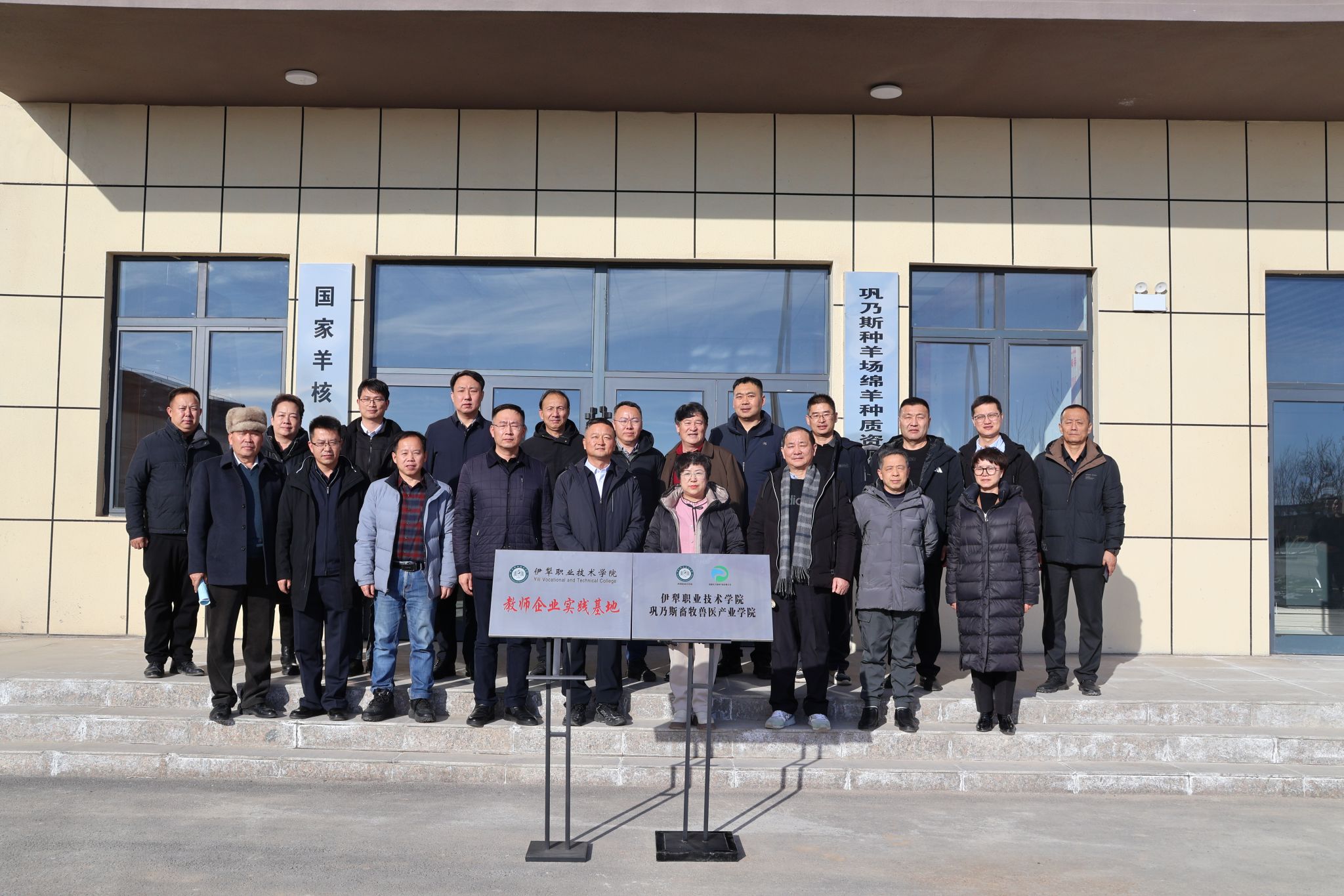 2026年1月12日,伊犁职业技术学院与新疆巩乃斯种羊场有限公司校企深度合作签约仪式,在该公司种质资源基地顺利举行。伊犁职业技术学院党委副书记、院长周钰,新疆巩乃斯种羊场有限公司党委书记、董事长、总经理安玮,南京农业大学范红结教授,伊犁州教育局副局长王嵘,伊犁州畜牧总站高级畜牧师团勇等相关单位领导及随行人员出席活动。