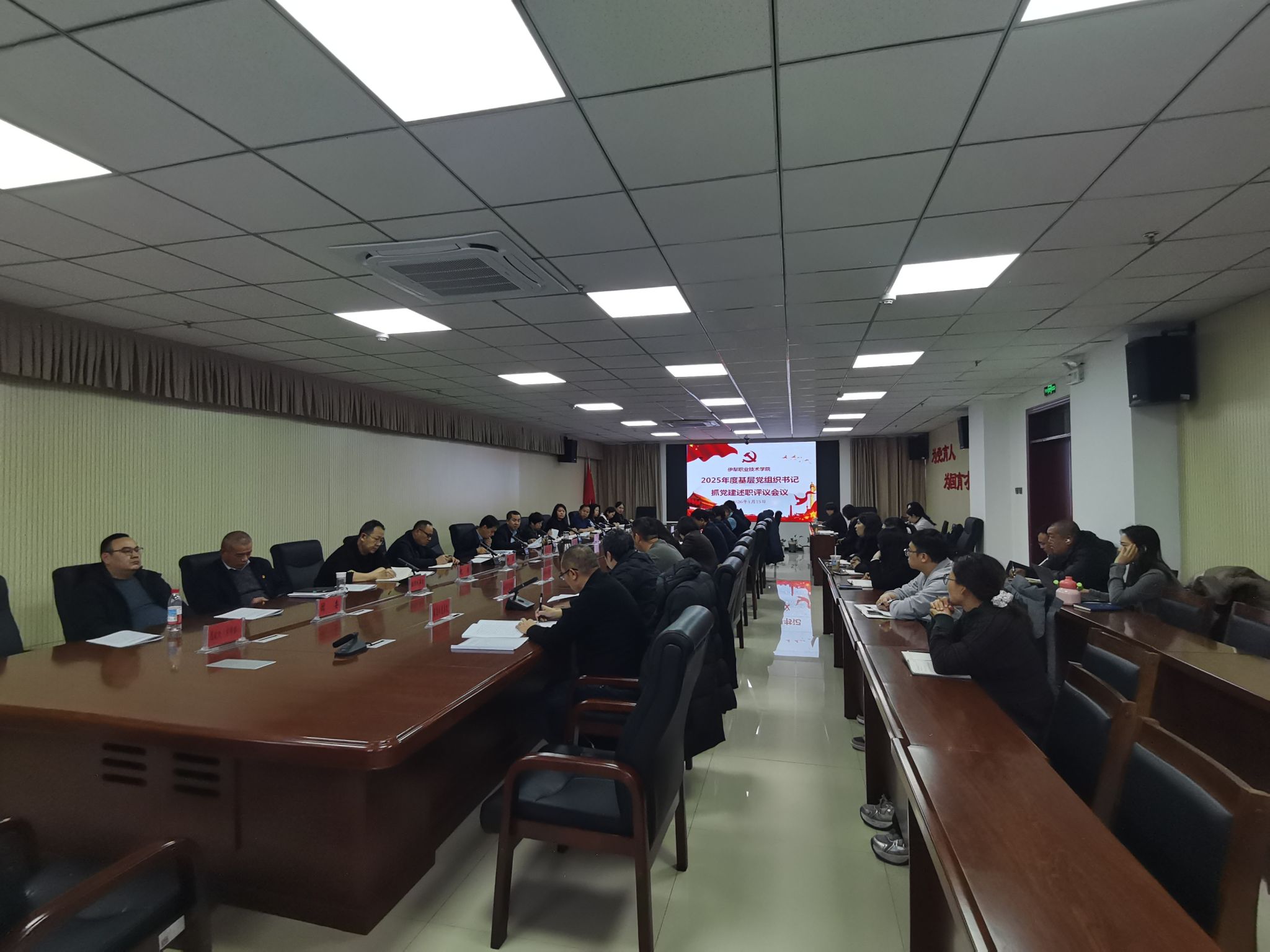为压紧压实党建主体责任,以高质量党建引领高质量发展,近日,学校召开2025年度基层党组织书记抓基层党建述职评议考核会议。学校党委领导班子、各基层党组织书记、专职组织员及相关部门领导参加会议,党委书记胡毅涛主持会议。