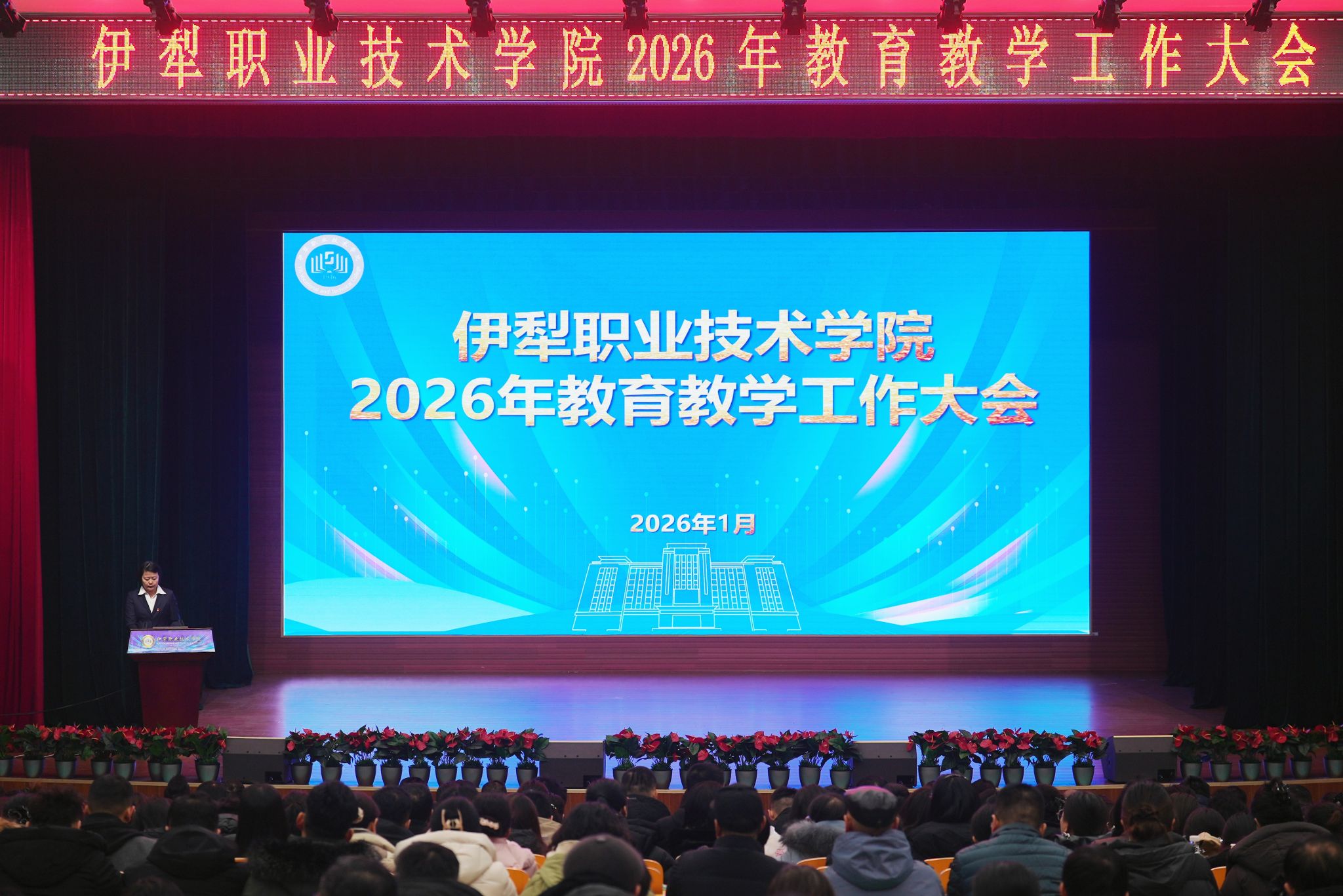 2026年1月20日上午,伊犁职业技术学院西校区报告厅内气氛庄重热烈,以“深化教育教学改革,强化内涵建设,奋力开创学院高质量发展新局面”为主题的教育教学工作大会正式开幕。全体教职工与特邀嘉宾齐聚一堂,共同谋划学院教育发展新蓝图。