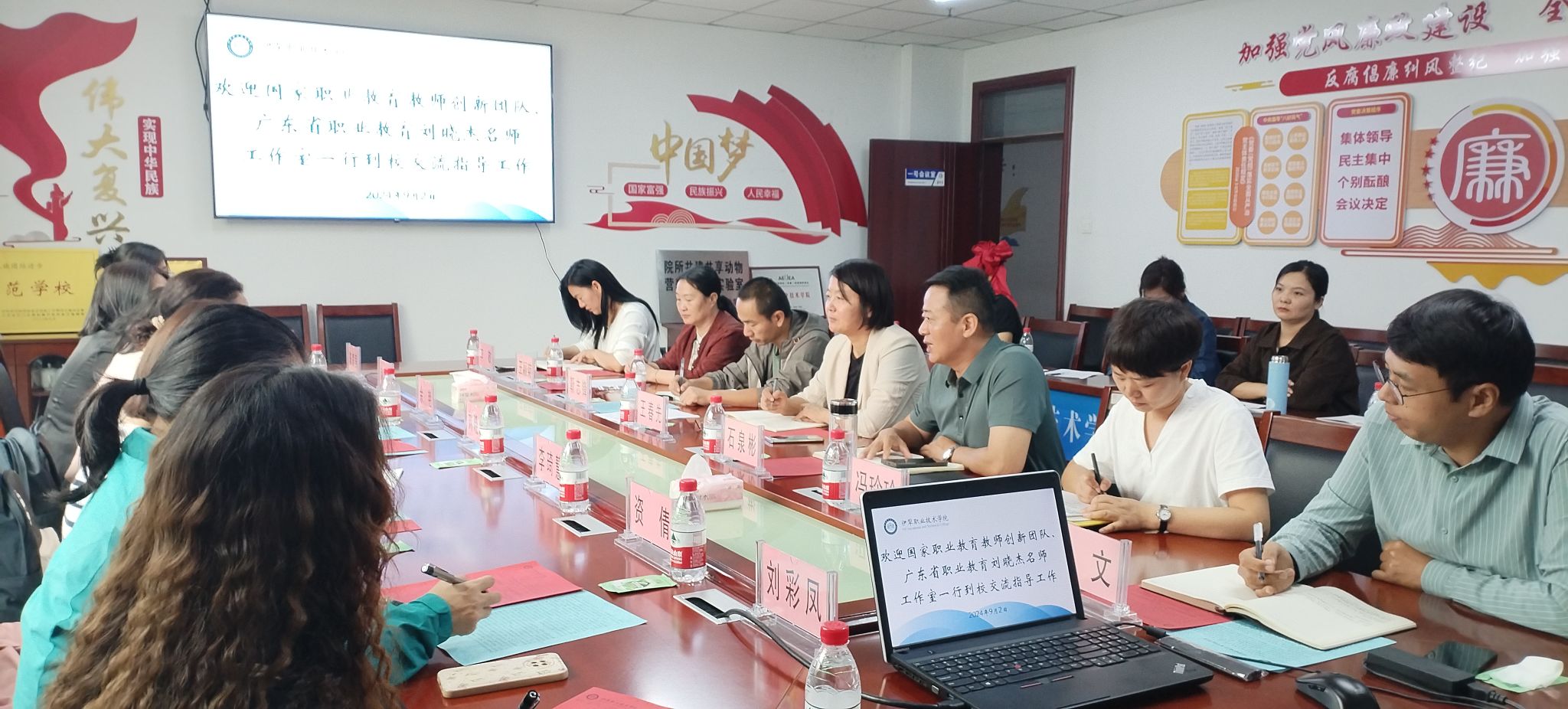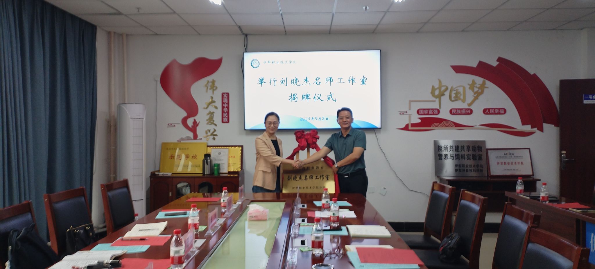 正逢金秋时节,必有赏心乐事,2024年9月2日上午,国家职业教育教师创新团队负责人、广东省职业教育刘晓杰名师工作室一行七人莅临我院进行交流,“刘晓杰名师工作室伊犁职业技术学院分部”揭牌仪式正式启动。