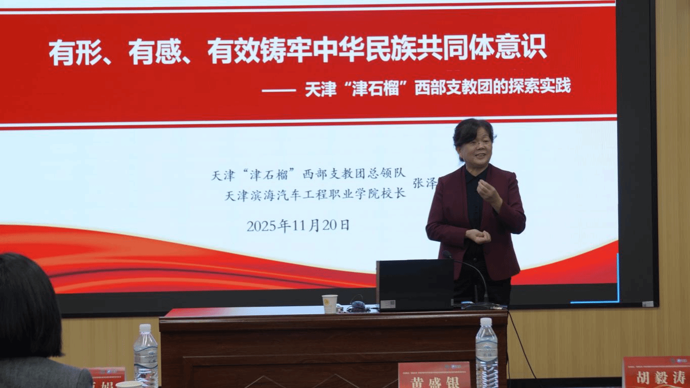天津滨海汽车工程职业学院张泽玲校长分享“津石榴”西部支教团经验,通过“有形有感有效”实践,探索“以教促融”新路径。