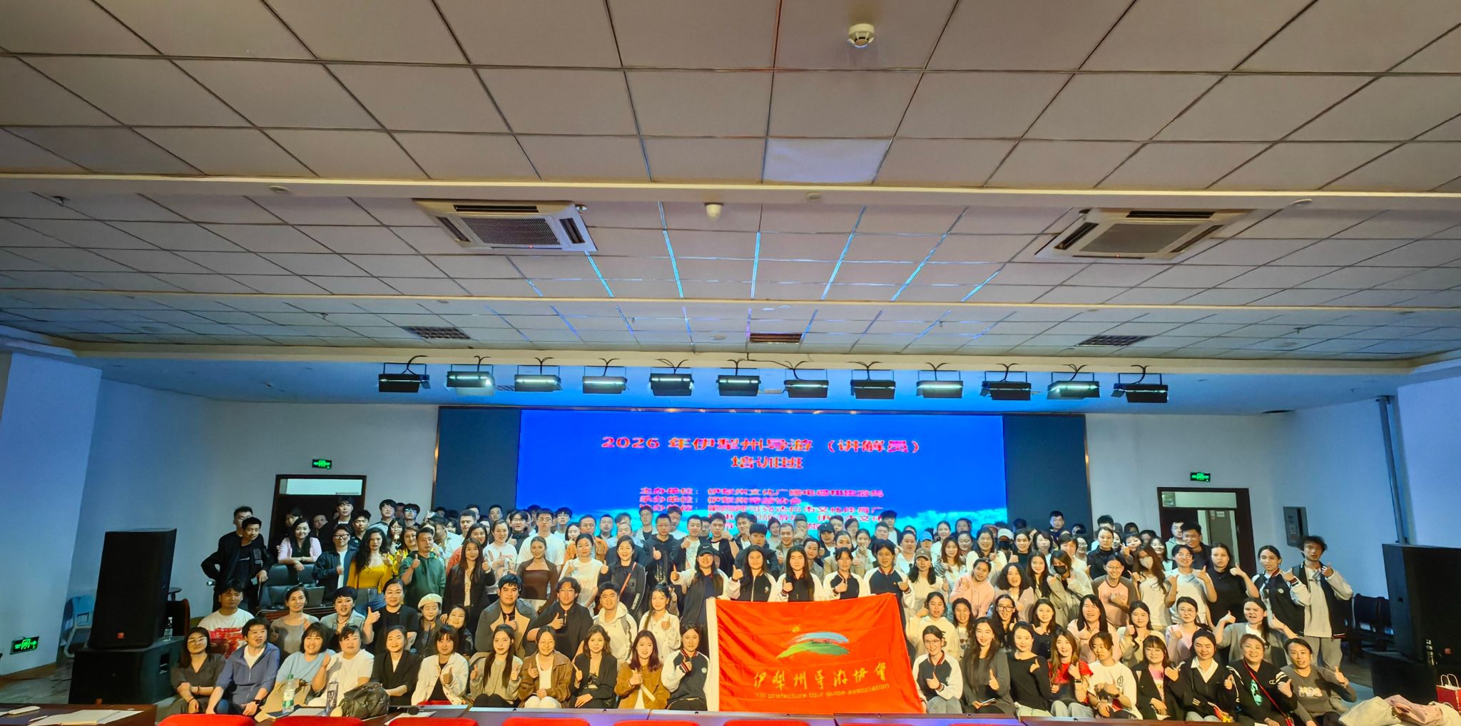 为深入贯彻党的教育方针,全面落实文旅融合发展要求,切实提升旅游专业人才培养质量与实践服务能力,在党的引领下,伊犁职业技术学院文化旅游学院旅游教研室主动谋划,联合实习就业办、团委,精心组织师生参与专业培训。2026年3月30日至31日,由伊犁州文化广播电视和旅游局主办、伊犁州导游协会承办的“2026伊犁州导游(讲解员)服务质量提升培训班”顺利举办,此次培训汇聚了全疆各地300名优秀学员,搭建起文旅行业交流学习、技能精进的优质平台,我校3名教师带队,联合选派30名优秀学员全程参与此次培训,其中包含团委成员6名、志愿服务队队员10名以及优秀文旅专业学生11名,师生们以饱满的学习热情投入培训,收获颇丰。